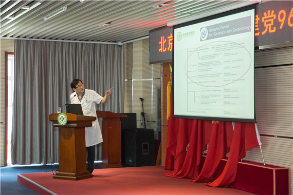 院长陈峥同志围绕医院老年学科发展定位及展望进行了主题报告,通过介绍发达国家老年医院建设的现状和启示,从科研、教学、临床、服务四个方面阐述了未来我院发展定位的设想。