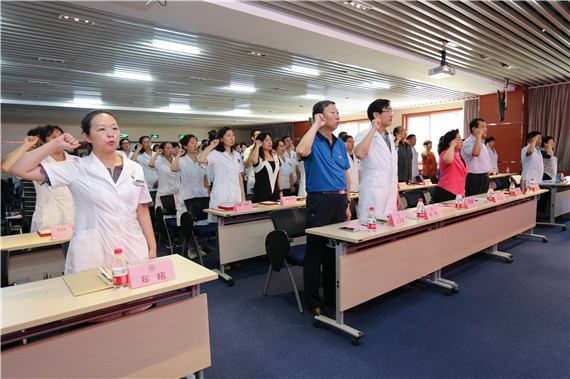 在大会隆重、庄严的气氛中,举行了“佩戴党徽、党员重温入党誓词、新发展的中共预备党员宣誓”仪式,在离休老党员刘振同志的带领下,7名新发展的中共预备党员庄严宣誓、全体老党员重温入党誓词,进一步强化了全院党员的使命感、荣誉感和责任感。