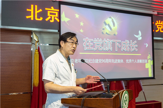 会议在宏亮高亢的国歌声中拉开了序幕。医院党委副书记、院长陈峥同志宣读了表彰决定,对荣获局级和院级荣誉的先进集体和个人表示祝贺,号召各党支部和广大党员向他们学习,扎实工作,恪尽职守,无私奉献,为医院建设贡献力量。在会上,播放了《党旗下成长——北京老年医院纪念建党96周年先进集体、优秀个人表彰影展》,对先进集体和优秀个人的风采进行了展示。