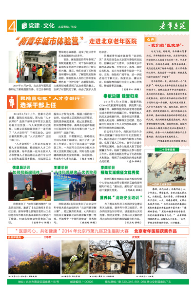 2014年11月29日,北京老年医院团委和社工部根据团市委、市卫计委和医管局的总体部署,迎来了社区青年汇体验团组的6名青年。