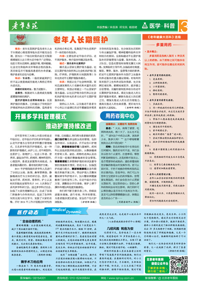 老年医学的三大核心内容分别是老年综合征、老年综合评估和多学科团队。以老年护理为主导的多学科整合管理模式,又名多学科医疗护理模式,是一种新型的护理模式,由护士长、老年病医师、注册护士、助理护士、社会工作者、营养师、康复治疗师、药剂师、精神科医师、心理医师、患者及家属等共同组成,为患者提供最好的、最有效的照护方案。