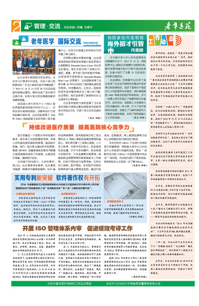 由北京老年医院等3家机构承办的“第四届全国老年医院联盟大会暨老年健康服务业分会成立大会”于去年末圆满召开,近百家成员单位在老年健康服务体系建设等方面做了大量卓有成效的工作,起到了引领我国老年医学发展方向的作用。