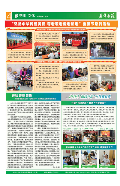 我院与卫计委、志愿者联合会和央视新闻中心等联手开展敬老爱老公益活动: