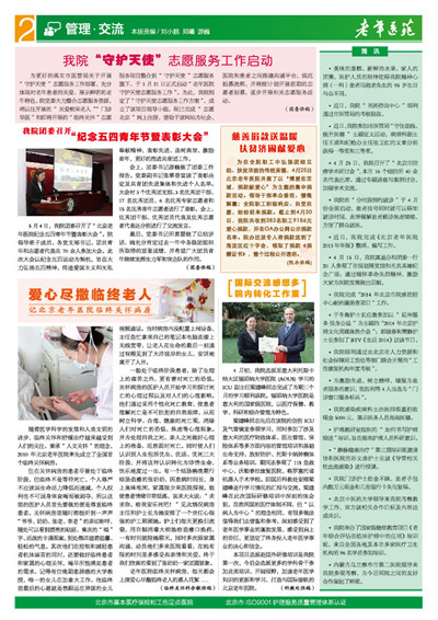 于冬梅护士长应邀参加以“延伸服务 投身公益”为主题的“2014年北京护理文化周媒体推介会”;郭建春和樊静护士长参加了BTV《生活2014》访谈节目。