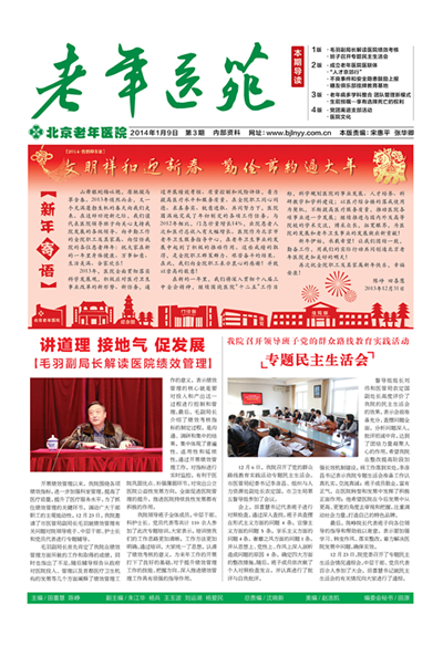 在新的一年里,我们将深入贯彻十八届三中全会精神,继续围绕医院“十二五”工作目标,科学规划医院的事业发展、人才培养、科研教学和学科建设;以医疗综合楼的落成使用为契机,不断提高医疗服务质量,推动医院各项事业进一步发展;继续推进与国内外及高等院校的学术交流,博采众长,拓宽眼界,为医院的发展和老年卫生事业的发展做出新贡献!