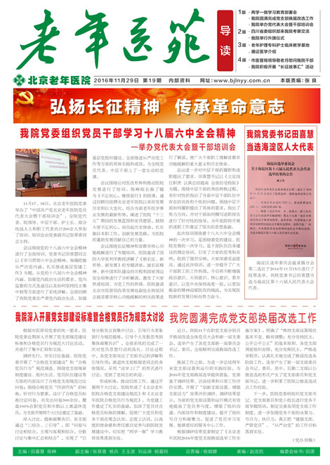 根据调研结果党委制定了《北京老年医院2016年度党支部换届选举工作实施方案》,明确了“维持支部设置现状 基本不变、略有调整;充分发扬民主, 公开公平公正”的基本原则。各党支部周密组织安排,充分发挥民主,严格选 举程序,认真扎实地完成了换届改选各 阶段工作,选举产生了新一届支部委员 会书记、委员。其中,后勤二支部以公 推直选的形式产生了党支部委员和党支部书记,进一步积累了医院公推直选试 点工作经验。