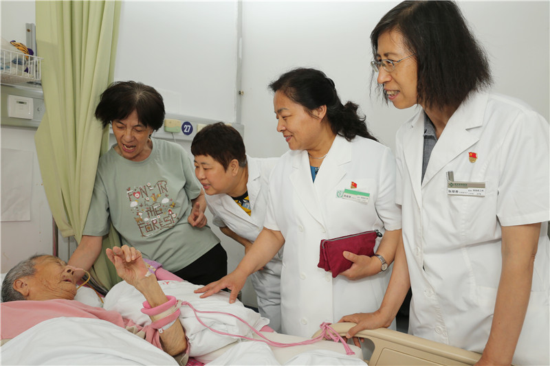 党委书记田喜慧、副书记张翠香慰问了住院的离休干部彭老,彭老,已93岁高龄,是新中国成立前老党员。领导向家属详细询问了彭老的近期状况,并嘱咐身边的工作人员:“要继续定期安排志愿者,经常看望彭老,尽可能帮助家属解决生活中遇到的困难。”