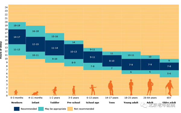 每个人每个年龄段睡眠时间的要求都不完全相同,为了反映出个体间的差异,美国国家睡眠基金会近年来更新了关于各生命阶段中每日睡眠量的推荐意见,声明推荐的平均小时数可能是合适的,但不同个体间有显著差异,并且给出了每个年龄组的新推荐范围。