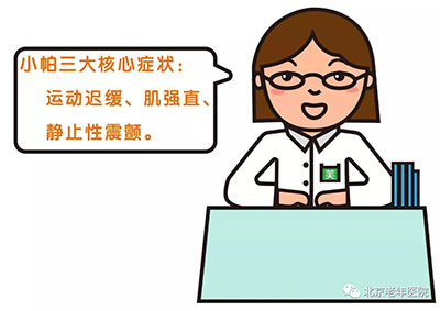 在这三大核心症状中,运动迟缓是必备症状。2015年国际帕金森病和运动障碍学会以及2016年中国帕金森病的诊断标准均规定:帕金森综合征(要想诊断小帕,需要先诊断帕金森综合征)的诊断标准是必备运动迟缓和至少存在静止性震颤或肌强直2项症状的1项。