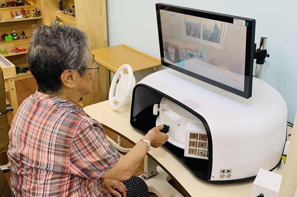 中心设有评估室、认知训练室、工娱治疗大厅等场所,配有认知评估和训练仪、语言评估和训练仪、模拟现实的日常生活能力训练仪等专业设备。