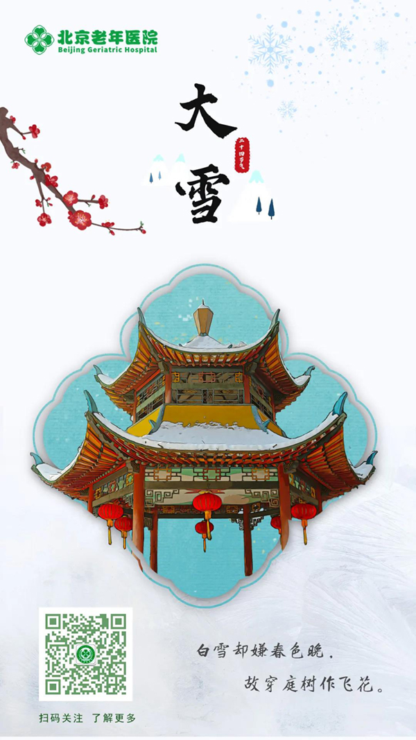 冬季大雪时节,是流行性感冒(病毒性感冒)、呼吸道感染、慢性支气管炎、支气管哮喘、过敏性鼻炎等呼吸道疾病的高发时期,加之目前疫情仍然紧张,尤其是老年人,外出尤应注意防风防寒,注意保暖,出门戴好口罩,避免疫气侵袭。心脑血管病也是冬季多发疾病,此类患者外出应穿宽松的、保暖效果好的衣服,既保暖又不影响血液循环。平时适当运动,补充水分,降低心脑血管疾病患病风险。