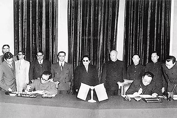 △《关于中国西藏地方和印度之间的通商和交通协定》签署现场。