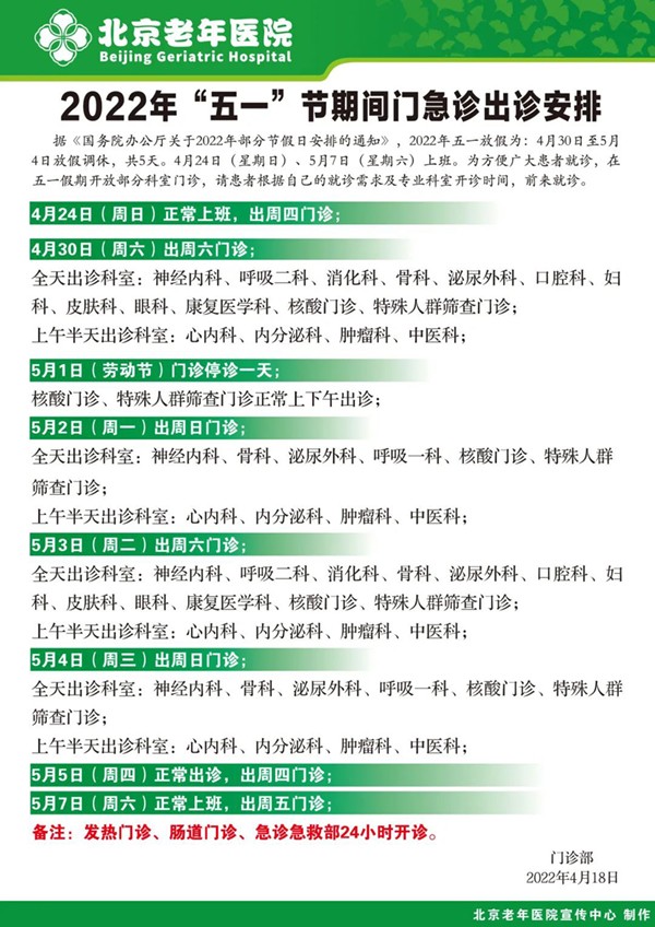 下一篇: 北京老年医院2022年“清明节”门急诊出诊安排