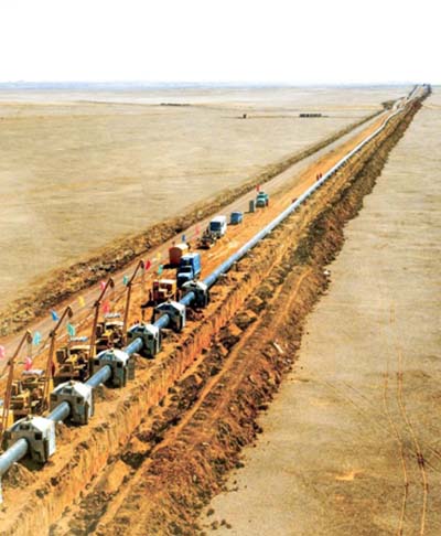 2002年7月4日,西气东输工程正式开工,标志着我国西部大开发和能源结构调整迈出重大步伐。从此,一条西起新疆塔里木气田,东至上海黄浦江畔,途经10省区市近4000公里的管道干线最终铸成气贯神州的能源大动脉。