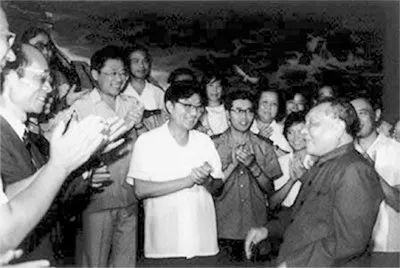 △1987年夏天,中央首次邀请全国科技界14位专家及家属到北戴河休假。图为邓小平接见部分科学技术工作者代表