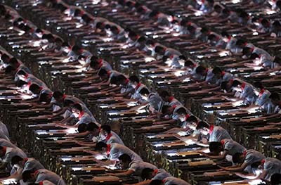 △北京奥运会开幕式上,2008名演员击打2008尊缶
