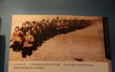 △1958年4月,十万解放军官兵进入戈壁建设导弹试验基地