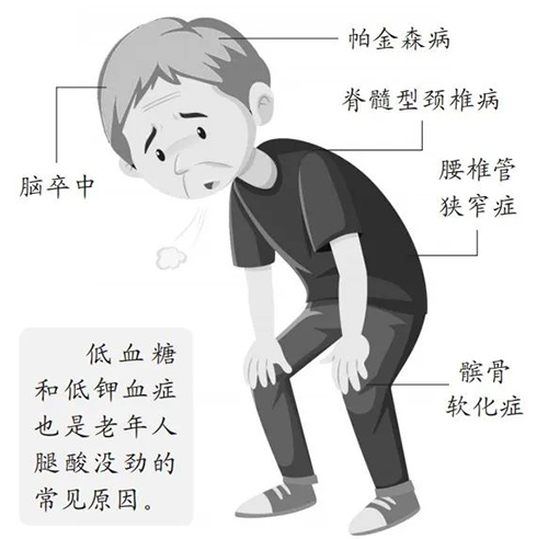 跌倒会给老人造成巨大的身心伤害,其中大约 10%将导致严重后果,如髋部骨折、颅脑损伤等,严重影响老人生活质量。排查老人腿酸无力的原因,并及时加以纠正,有利于积极预防跌倒事件的发生。综合来看,老人腿酸无力主要有以下几种原因: