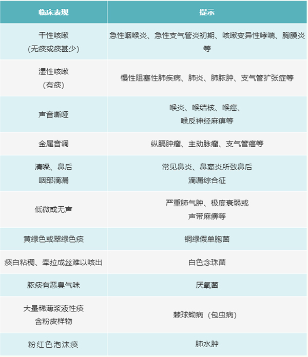关于咳嗽的临床表现主要是咳嗽的性质、时间与节律、音色,痰的性状和量。就如痰白粘稠、牵拉成丝难以咳出,提示有白色念珠菌感染可能;粉红色泡沫痰是肺水肿的特征;脓痰有恶臭气味者,提示有厌氧菌感染可能……这些都是相应疾病的外在表现,可以为诊断指明方向。