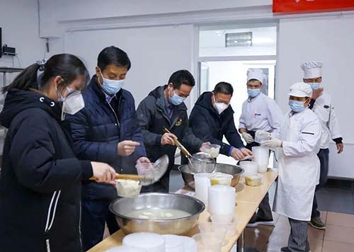 院领导还和相关行政科室人员一起,来到职工食堂,为值班人员盛饺子,送祝福,希望他们能在别样的团圆中感受到浓浓的年味和“家”一样的暖意,让每一位坚守岗位的人员都感受到了浓浓的温暖。