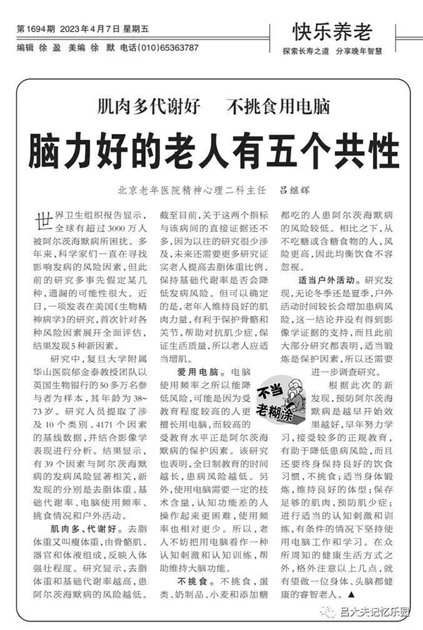 在众所周知的健康生活方式之外,格外注意以上几点,就更有希望做一位身体、头脑都健康的睿智老人。