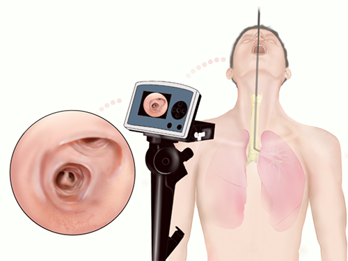 支气管镜检查是使用支气管镜进入支气管内做检查的一种方法。它可以利用支气管镜前端的微小摄像头,直接观察支气管腔内和黏膜上的病变,进而完成检查和治疗。一般在肺部CT检查不能明确诊断时使用,比如微小的支气管肿瘤以及小的支气管异物,还可进行局部取样。