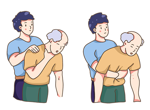 如果老年人经咳嗽后仍无法自行排出异物,并表现出无法言语、手势求救、面部发紫等症状,那么请及时实施海姆立克急救法。
