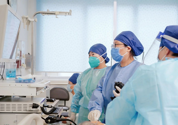 患者就是家人,电话就是号令。张艳当即放下手头活,告诉家人医院有情况,一边急匆匆地从家中奔赴医院内镜中心,一边立刻联系内镜中心蔡志华护士长紧急进行人员调配。与此同时,得到消息的内镜中心护士曹艳红急匆匆奔向医院,消化科值班医生张汾燕也迅速赶往内镜中心。