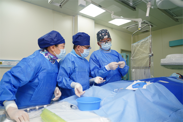 张志勇主任为患者进行经桡入路椎动脉支架植入术的日间手术