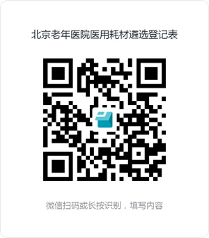 9、报名请扫描下方的二维码,“北京老年医院医用耗材遴选登记表”。注:以上提交材料必须真实,有效。如发现提供虚假材料,该企业一票否决!