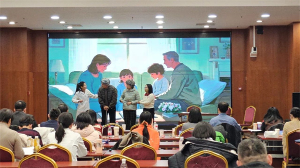 情景剧《凝爱向阳》 刻画了一个医务社工介入晚期患者家庭支持与生命教育的故事。故事的主人公是一位年轻的不幸罹患脑癌晚期的父亲,本就痛苦不堪的家人,因是否要向6岁女儿隐瞒病情,产生了分歧。医务社工通过专业介入,分析家庭分歧产生的深层因素,引导家属之间有效表达想法和感受,增进相互理解。通过家庭会议、绘制《人生绘本》、生命教育等方法,促进家庭内部沟通氛围的改善,使家属之间情感联系更加紧密,女儿知晓父亲病情后也理解了生命的意义。展现了医务社工在晚期患者家庭支持、儿童生命教育方面的积极作用。