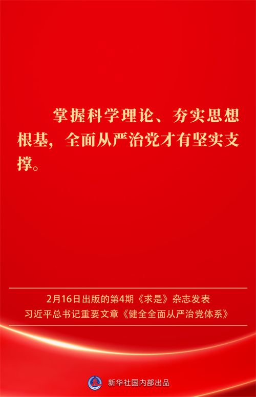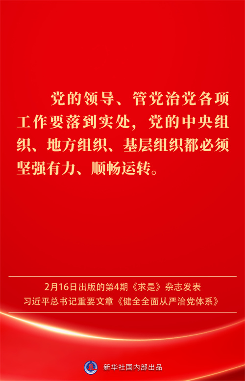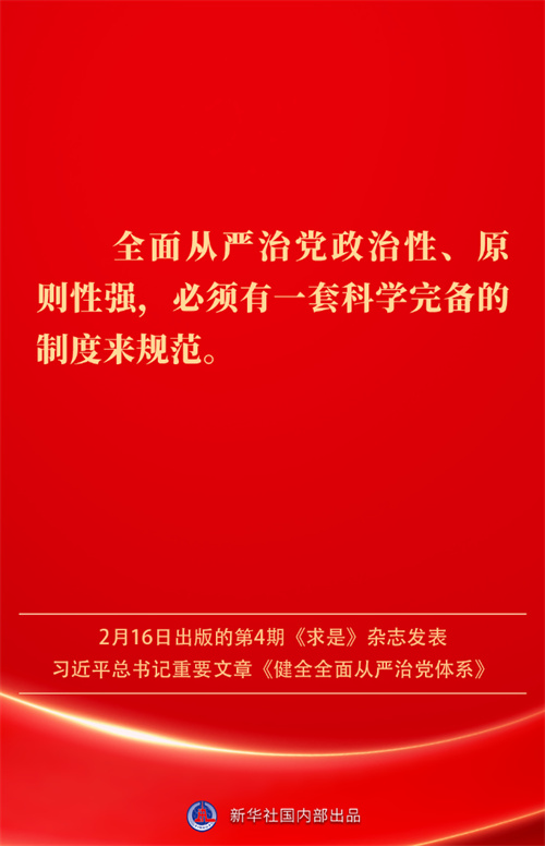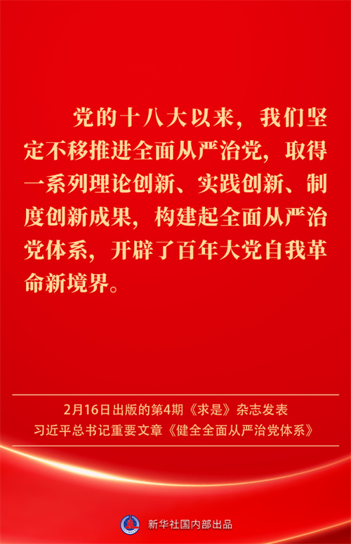 2月16日出版的第4期《求是》杂志发表习近平总书记重要文章《健全全面从严治党体系》。如何进一步健全要素齐全、功能完备、科学规范、运行高效的全面从严治党体系?习近平总书记阐明要旨——