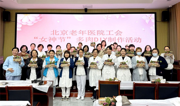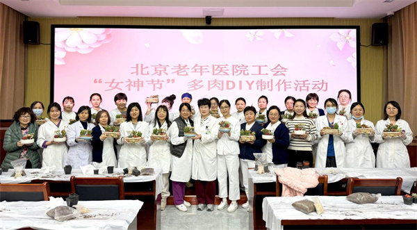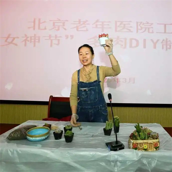 为推进医院文化建设,丰富职工文化生活,展现女职工健康向上的精神风貌,3月5日—7日,北京老年医院工会在行政楼多功能厅分六场举办“邂逅多肉 乐栽其中”——手工制作活动,工会主席王玉波、副院长倪如陽及300余名女职工参与其中。