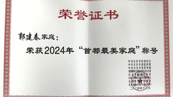 喜报 | 北京老年医院郭建春家庭荣获 “首都最美家庭” 称号