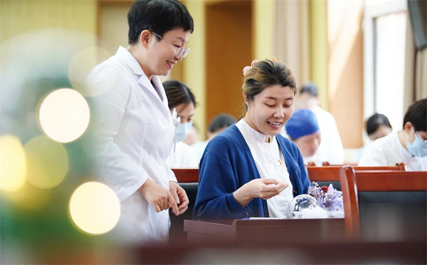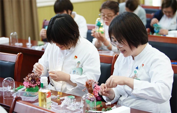 5月7日中午,北京老年医院社工部在2025年国际护士节来临前夕,围绕 “智护创新,医路同行,提质增效,暖护银龄” 主题,举办了 “以花为媒 点亮心灯” 艺术疗愈减压活动。活动通过两场永生花小夜灯制作,为百余名护理人员带来专属 “心灵SPA”,以创意手作关怀他们的身心健康。