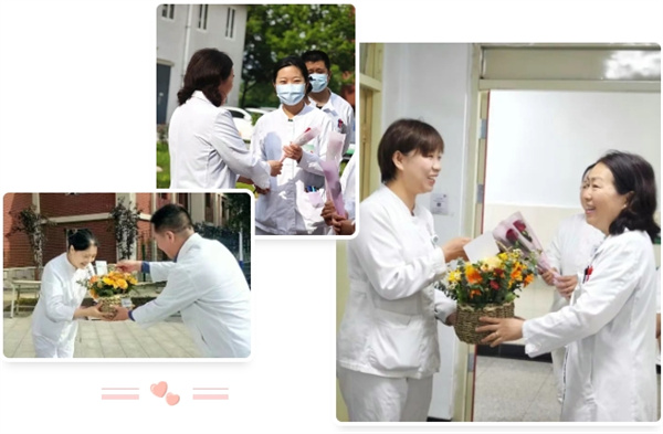 5月12日上午8时,北京老年医院领导班子组成慰问团,深入各个护理单元,为奋战在临床一线的护士们送上鲜花与节日祝福。