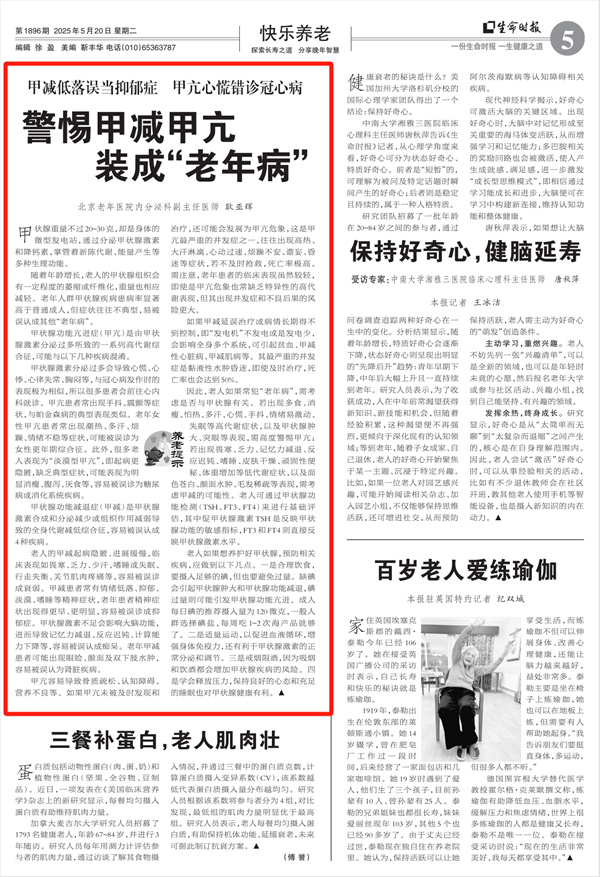 甲状腺重量不过20~30克,却是身体的微型发电站,通过分泌甲状腺激素和降钙素,掌管着新陈代谢、能量产生等多种生理功能。随着年龄增长,老人的甲状腺组织会有一定程度的萎缩或纤维化,重量也相应减轻。老年人群甲状腺疾病患病率显著高于普通成人,但症状往往不典型,易被误认成其他“老年病”……
