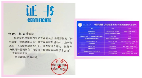 此次获奖,不仅是对祁盼、赵玉荣两位护理人员专业素养与创新能力的有力认可,更是对北京老年医院护理部糖尿病管理组长期深耕健康科普领域的充分肯定。一直以来,北京老年医院护理部糖尿病管理组始终坚持通过多元化的科普形式,积极向公众普及糖尿病护理知识,不断提升大众对糖尿病及相关健康问题的认知水平,切实履行着医疗工作者的社会责任。