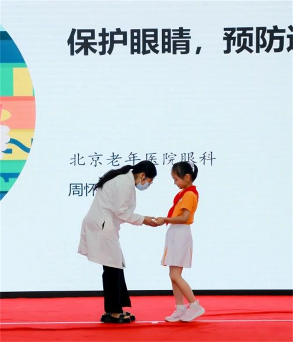 在青少年近视防控方面,眼科周怀蔚医生走进中关村第一小学科学城分校,为孩子们带来了一场别开生面的《打败 "小眼镜"》主题讲座。周医生利用趣味模型、互动游戏和动画片等生动形式,向孩子们讲解了科学用眼的重要性和方法,现场发放爱眼手册数十份,在孩子们心中种下了科学用眼的种子。