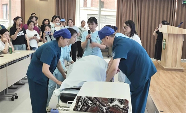 重症监护病房护士长吴忠艳分享《卧床老人气道管理经验》,结合解剖知识演示核心操作技术,重症监护室梁建峰主任特别扮演患者角色,团队配合规范展示专业操作流程,严谨的示范收获现场热烈反响。