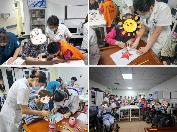 为了让住院患者在接受治疗的同时,感受到丰富的精神关怀与温暖,北京老年医院社工部携手病房医护团队、护工团队以及志愿者团队,于 “七一” 之际分别在认知障碍科与内分泌科为住院老人们精心策划并开展了 “红色记忆・温情相伴” 主题活动。活动通过艺术疗愈、红歌传唱以及健康教育等多元形式,将红色基因与人文关怀深度融合,为老人们的病房生活增添了别样的温暖与色彩。