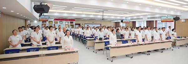 7月1日下午,北京老年医院隆重召开“薪火相传领航向,擎旗奋进启新程”——庆祝中国共产党成立104周年暨七一表彰大会,表彰先进,赓续精神,奋进未来。医院党政班子成员、党支部书记、党支部委员、中层干部、科主任助理、获奖人员、新发展中共预备党员、党代表、统战人士代表共170余人参加了会议,其他同志同步观看视频直播。大会由党委副书记、纪委书记王蕾同志主持。