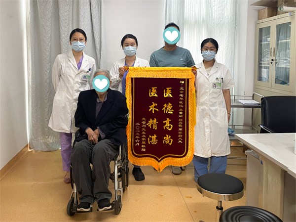 周四,一个普通的清晨,一位坐着轮椅的老爷子在儿子的陪同下,手捧锦旗,脸上洋溢着喜悦,缓缓来到眼科吴香丽副主任医师的门诊。他紧紧握住吴主任的手,激动之情溢于言表,反复念叨着:“我的左眼看见了,看见了……”这简短的话语,承载着重见光明的欣喜,也饱含着对医护人员的深深感激。