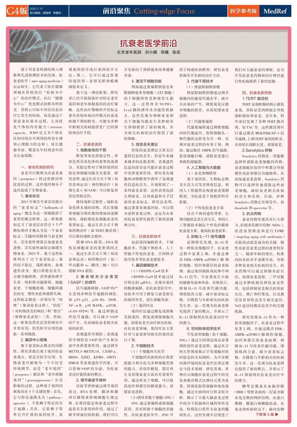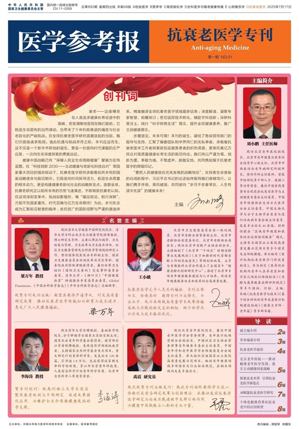 由国家新闻出版署审批,中宣部严格监管,国家卫生健康委员会主管的国家级医药卫生学术期刊《医学参考报》,携手北京老年医院共同创办的《医学参考报抗衰老医学专刊》于2025年8月隆重推出首刊(首期完整版内容请见下图)。