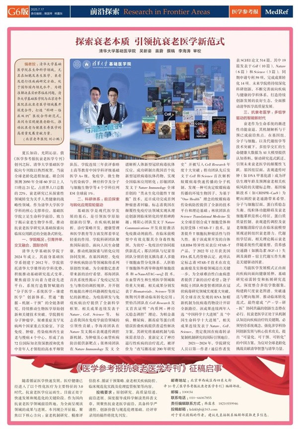 该专刊专注于报道抗衰老医学领域的尖端科技、创新研究成果及临床实践的最新进展,致力于构建一个高端的学术交流平台,旨在全面、迅速地向广大读者传递该领域的最新成就与重大突破。
