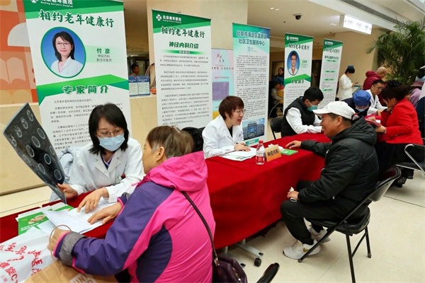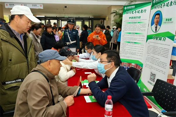 义诊区作为核心服务区域,始终保持高效运转。义诊团队由北京老年医院联合海淀北部各级医疗机构专家骨干组成,涉及全科医学科、内分泌科、中医科、骨科、口腔科、心内科、神经内科、核医学科、康复医学科、老年综合评估科等多个学科,为老年人提供血压测量、老年综合评估、用药指导、疾病筛查等便捷服务。专家们耐心倾听诉求,细致解答常见疾病的预防、治疗与护理康复。