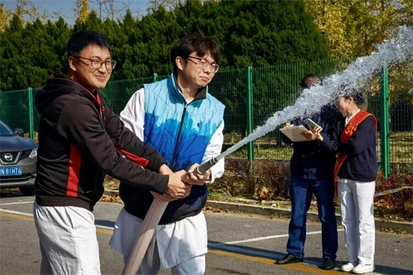 随着发令枪鸣响,比赛正式启动。各参赛职工精神抖擞、斗志昂扬,在赛场上争分夺秒、默契配合,充分展现我院职工良好精神风貌。本次运动会设置团体盘接水龙带接力、4×50米干粉接力灭火、运水灭火接力、火场救援等多个集体项目,既考验职工个人消防技能熟练度,又强调团队协作能力,巧妙将竞技性、趣味性与消防知识技能培训融为一体。