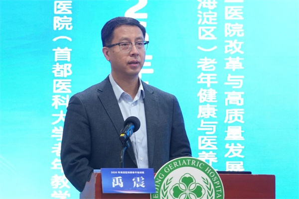 ▲ 开班仪式上,北京老年医院院长禹震致辞。他指出,当前老年医学发展面临诸多临床难题与挑战,从业者需怀揣强烈的使命感与责任感,以创新思维赋能临床实践,聚焦老年患者生命质量提升这一核心目标,在学科建设与医疗服务中实干突破、彰显专业价值,共同助力老年医学高质量发展。禹震院长的致辞为本次培训奠定了务实创新的基调,进一步凝聚了参训人员以科研推动老年医学发展的共识。