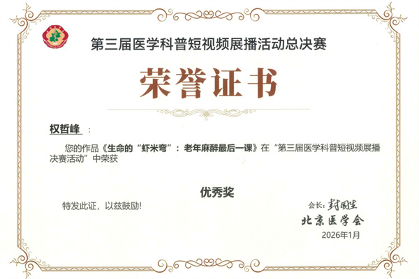获奖作品充分体现了我院医务工作者致力于老年健康科普宣传的社会责任感与专业情怀。未来,我院将持续深耕健康科普领域,推动更多医护人员投身健康科普事业,让权威医学知识“飞入寻常百姓家”,为提升全民健康素养、助力健康中国建设作出新的更大贡献!