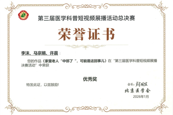 北京老年医院7部作品在第三届医学科普短视频展播活动中获奖